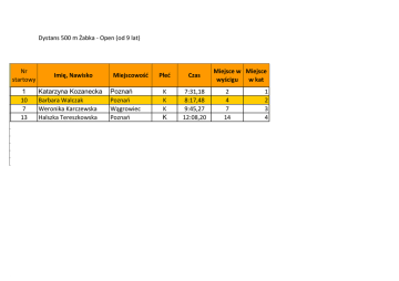 Dystans 500 m Żabka - Open (od 9 lat) Nr startowy Imię, Nawisko