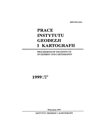 ISSN0032-6224 PRACE INSTYTUTU GEODEZJI I KARTOGRAFII PROCEEDINGS OF THE INSTITUTE OF GEODESY AND CARTOGRAPHY Warszawa 1999 INSTYTUT GEODEZJI I KARTOGRAFII RadaWydawnicza przyInstytucieGeodezji i Kartografii Editorial Council at the Institute of Geodesy and Cartography Wojciech Bychawśki (przewodniczący, chairman), Andrzej Ciołkosz (Zastępca przewodniczącego, deputy chairman), Teresa Baranowska, Wojciech Janusz, Andrzej Sas-Uhrynowski, Marcin Sękowski, Barbara Smyl, Karol Szeliga, Hanna Ciołkosz (sekretarz, secretary) Redaklornaukowywydawnictwa „PraceInstytutu Geodezji i Kartografii” Scientific Editor of the Proceedings of the Institute of Geodesy and Cartography Wojciech Bychawski Zastępcaredaktoranaukowegowydawnictwa „PraceInstytutu Geodezji i Kartografii” Deputy Scientific Editor of the Proceedings of the Institute of Geodesy and Cartography Andrzej Ciołkosz Zespól redakcyjny Editorial Staff Wojciech Janusz, Karol Szeliga Andrzej Sas-Uhrynowski, Albina Mościcka AdresRedakcji Instytut Geodezji i Kartografii 00-950 Warszawa, ul Jasna 2/4 Address of the Editorial Board: Institute of Geodesy and Cartography 00-950 Warsaw, Jasna 2/4 Str. Poland e-mail: [email protected] © Copyright by Instytut Geodezji i Kartografii ISSN0032-6224 Indeks37357 IGiK, Warszawa 1999 r. Składkomputerowy idruk: IGiK PRACE INSTYTUTU GEODEZJI I KARTOGRAFII 1999, tomXLVI, zeszyt98 SPIS TREŚCI: WOJCIECHPACHELSKI EWA WYSOCKA Standaiyzacja systemów informacji przestrzennej: teoria i praktyka......... 7 WOJCIECHPACHELSKI Źródła europejskiego SIT oraz udział norm europejskich w jego budo wie i rozwoju.......................................................... ........................................ 23 ANDRZEJ SAS-UHRYNOWSK1 MARIA C1SAK ANDRZEJSAS LUCJANSIPORSK1 Zmodernizowana podstawowa osnowa grawimetryczna kraju (POGK 97)..... 41 ANDRZEJSAS Analiza porównawcza nowej podstawowej osnowy grawimetrycznej kraju (POGK 97) z osnową z lat 60............................................................................. 51 LUCJAN SJPORSKl Wyrównanie wyników pomiarów nowej podstawowej osnowy grawimetiycznej kraju (POGK 97).................................................................................. 59 JERZYJANUSZ Naznaczanie parametrów krzywizn ugięcia fundamentów........................... 65 JERZYJANUSZ WOJCIECHJANUSZ MIECZYSŁAW KOŁODZIEJCZYK JAN WASILEWSKI Inklinometr IS do pomiaru zmian nachyleń i ugięć ścian szczelinowych......... 79 M1ECZYSŁA WSMÓŁKA Skomputeryzowany system pomiarowy ze strunowąaparaturąpomiarową... 97 PROCEEDINGS OF THE INSTITUTE OF GEODESY AND CARTOGRAPHY 1999, Vol. XLV1, No. 98 CONTENTS WOJCIECHPACHELSK1 EWA WYSOCKA Standardisation of spatial information systems: theory and practice....... 7 WOJCIECHPACHELSK1 Sources of European LIS and contribution of European standards to its creation and development......................................................................... 23 ANDRZEJ SAS-UHRYNOWSKI MARIA CISAK ANDRZEJ SAS LUCJAN SIPORSK1 Modernised basic gravimetric network of Poland (POGK 97)................ 41 ANDRZEJSAS Comparative analysis of new basic gravimetric framework of Poland (POGK 97) with framework from sixties......................................................... 51 LUCJAN SIPORSKI Adjustment of measurements of new basic gravimetric framework of Poland (POGK 97)............................................................................. ........................ 59 JERZY JANUSZ Determination of curvatures of sag offoundations............................................ 65 JERZY JANUSZ WOJCIECHJANUSZ MIECZYSŁAWKOŁODZIEJCZYK JAN WASILEWSKI IS inclinometer for measuring changes of inclination and deflection of slit walls........................................................................................................... 79 MIECZYSŁAWSMÓŁKA , Computerised measuring system with string measuring instrument......... 97 ТРУДЫ ИНСТИТУТА ГЕОДЕЗИИ И КАРТОГРАФИИ 1999, Том XL VI, тетрадь 98 СОДЕРЖАНИЕ ВОЙЦЕХПАХЕЛСКИ ЭВАВЫСОЦКА Стандаризация систем пространственной информации: теория и пра ктика................................................................................................................ 7 ВОЙЦЕХПАХЕЛСКИ Источники европейской системы SIT и участие европейских норм в её создании и развита................................................................................ 23 АНДЖЕЙ САС-УХРЫНОВСКИ МАРИЯ ЦИСАК АНДЖЕЙ САС ЛЬУЦИАН СИПОРСКИ Модернизированная основная гравиметрическая сеть страны /POGK 97/....................................................................................................... 41 АНДЖЕЙ САС Сравнительный анализ новой гравиметрической основы страны /POGK 97/ с основой 60. годов........................................................................ 51 ЛЬ УЦИАН СИПОРСКИ Уравнивание результатов измврения новой основной гравиметри ческой сети страны /POGK 97/........................................................................ 59 ЕЖЫЯНУШ Определение параметров кривизны прогиба фундаментов........................ 65 ЕЖЫЯНУШ ВОЙЦЕХЯНУШ МЕЧЫСЛАВ КОЛОДЗЪЕЙЧЫК ЯНВАСИЛЕВСКИ Инклиномер IS для измерения изменений наклона и прогиба зазорных стен.................................................................................................. 79 МЕЧЫСЛАВ СМУЛКА Ком