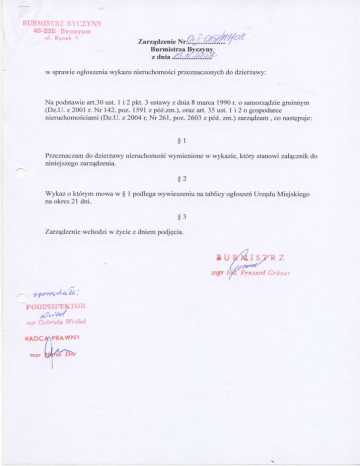 Wykaz o lłtórymmowa w $ 1 podlegawywieszęniuna tablicy ogłoszeńUrzędu Miejskiego