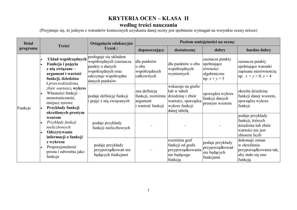 KRYTERIA OCEN – KLASA II według treści nauczania
