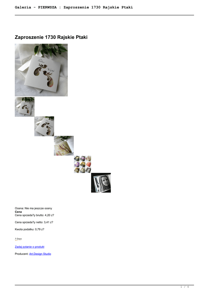 Galeria - PIERWSZA : Zaproszenie 1730 Rajskie Ptaki