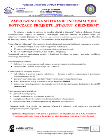 zaproszenie na spotkanie informacyjne dotyczące projektu ,,startuj z
