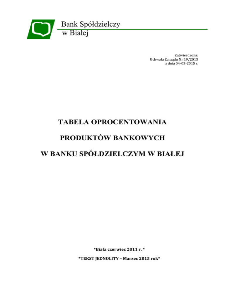 xv. tabela oprocentowania - Bank Spółdzielczy w Białej