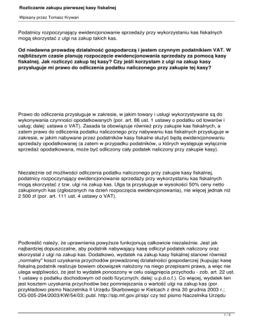 Rozliczanie zakupu pierwszej kasy fiskalnej