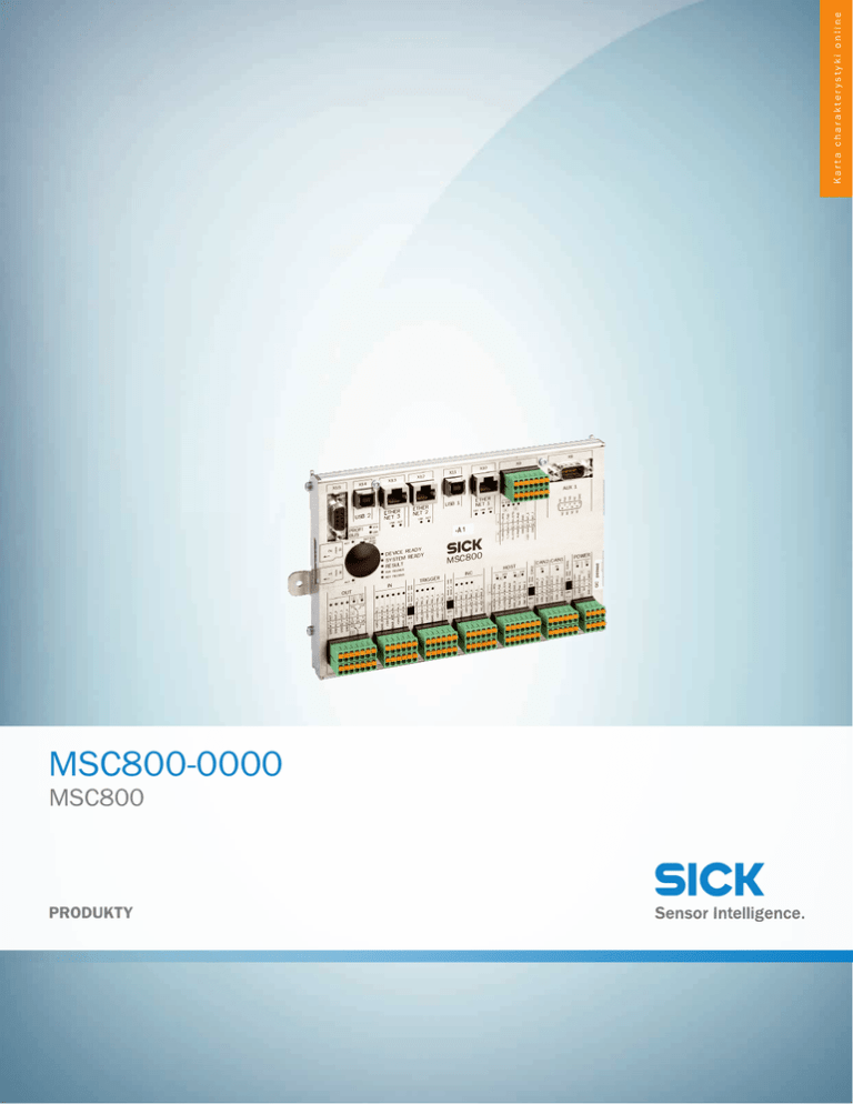 MSC800-0000 MSC800 PRODUKTY Karta charakterystyki online MSC800-0000 | MSC800 PRODUKTY A B C D E F H I J K L M N O P Q R S T Informacje do zamówienia Typ Nr artykułu MSC800-0000 więcej wersji urządzeń i akcesoriów 1040571 www.sick.com/MSC800 Szczegółowe dane techniczne Cechy MTBF > 80 000 h MTTR < 5 min, na komponent Część systemowa Moduł logiczny jako pojedynczy element Interfejsy Szeregowa (RS-232, RS-422/-485) ✔ (4) Funkcja Wyjście danych, parametryzacja, analiza Prędkość przesyłania danych (0,3 kBaud ... 115,2 kBaud) Protokół Standard SICK, protokoły charakterystyczne dla danego zastosowania na zamówienie Przyłącze elektryczne D-Sub, 9 pinów ✔ (3) Ethernet Funkcja Wyjście danych, parametryzacja, analiza Prędkość przesyłania danych 10 MBit/s / 100 MBit/s Protokół TCP/IP, FTP, Półdupleks/pełny dupleks Przyłącze elektryczne RJ45 ✔ PROFIBUS DP Funkcja Wyjście danych, parametryzacja, analiza Prędkość przesyłania danych 12 MBaud Protokół PROFIBUS DP Przyłącze elektryczne D-Sub, 9 pinów ✔ (2) Magistrala CAN Prędkość przesyłania danych (20 kbit/s ... 1 Mbit/s) Protokół Protokół CANopen, sieć CAN Sensor Network Przyłącze elektryczne Przyłącze zaciskowe Cyfrowe wejścia przełączające ✔ (14) Funkcja PNP, konfigurowalne, izolowane optycznie, zabezpieczone przed zamianą biegunów Przyłącze elektryczne Przyłącze zaciskowe Cyfrowe wyjścia przełączające ✔ (4) Funkcja PNP, konfigurowalne, chronione przed zwarciem Przyłącze elektryczne Przyłącze zaciskowe 2 | SICK Karta charakterystyki online | 2017-02-20 16:36:10 Informacje mogą ulec zmianie bez powiadomienia MSC800-0000 | MSC800 PRODUKTY ✔ (2) Wyjścia przekaźnikowe Funkcja Bezpotencjałowy Przyłącze elektryczne Przyłącze zaciskowe ✔ USB Przyłącze elektryczne Gniazdo Micro USB, typ B ✔ Interfejs serwisowy Przyłącze elektryczne Serwisowe gniazdo wtykowe Wskazania optyczne 2 x LED na moduł zasilacza 6 x LED – moduł bezpieczeństwa (12-pinowy blok zaciskowy) 48 x LED – moduł logiczny Mechanika/elektryka Napięcie zasilające 24 V DC Pobór mocy 10 W, typowy Dane dotyczące otoczenia Temperatura otoczenia podczas pracy 0 °C ... +40 °C Temperatura otoczenia – przechowywanie –20 °C ... +70 °C Dopuszczalna względna wilgotność powietrza 95 %, bez kondensacji 2017-02-20 16:36:10 | Karta charakterystyki online Informacje mogą ulec zmianie bez powiadomienia | SICK 3 Karta charakterystyki online SICK W SKRÓCIE Firma SICK należy do czołowych producentów inteligentnych czujników i rozwiązań wykorzystujących czujniki do zastosowań przemysłowych. Wyjątkowa gama produktów i usług stwarza idealną podstawę dla bezpiecznego i wydajnego sterowania procesami, ochrony ludzi przed wypadkami i unikania zanieczyszczenia środowiska. Mamy szerokie doświadczenie w różnych branżach i znamy występujące w nich procesy oraz wymagania. Nasze inteligentne czujniki zapewniają klientom dokładnie to, czego im potrzeba. W centrach aplikacji w Europie, Azji i Ameryce Północnej rozwiązania systemowe są testowane i optymalizowane pod kątem potrzeb konkretnych klientów. Wszystko to sprawia, że jesteśmy niezawodnym dostawcą i partnerem w zakresie rozwoju. Naszą ofertę dopełniają kompleksowe usługi: rozwiązania SICK LifeTime Services wspierają klientów w trakcie całego cyklu użytkowania maszyny i dbają o bezpieczeństwo i produktywność. Właśnie tak rozumiemy hasło „Sensor Intelligence”. BLISKO KLIENTA NA CAŁYM ŚWIECIE: Osoby kontaktowe i pozostałe lokalizacje - www.sick.com SICK AG |Waldkirch|Niemcy |www.sick.com