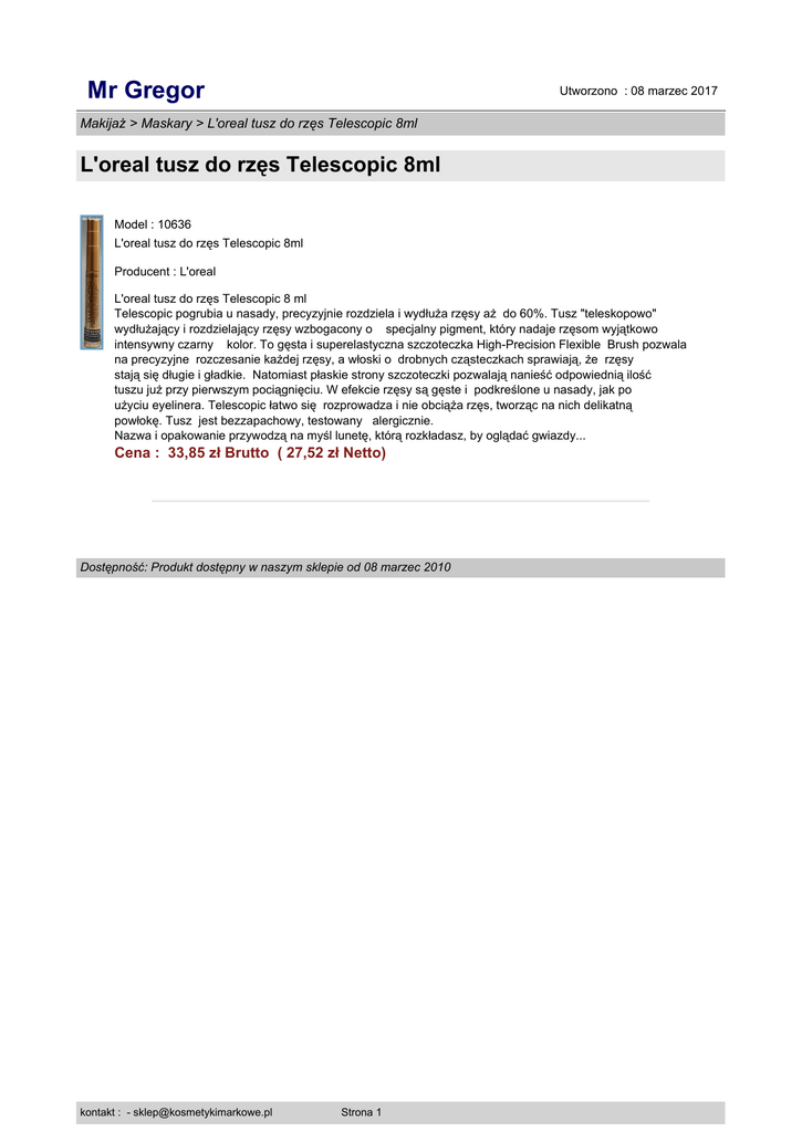 L`oreal tusz do rzęs Telescopic 8ml - Mr Gregor