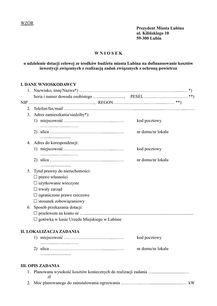 WZÓR Prezydent Miasta Lubina ul. Kilińskiego 10 59