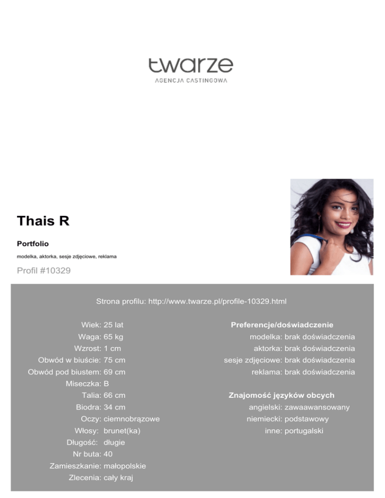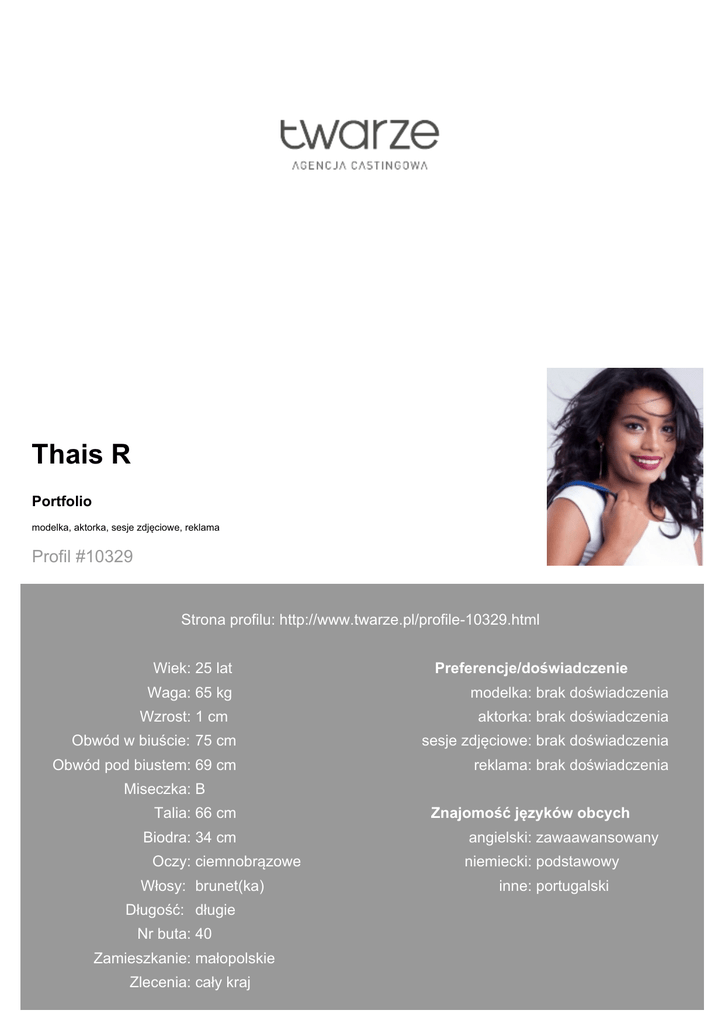 Thais R na Twarze - modelka, aktorka, sesje zdjęciowe, reklama