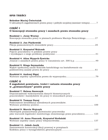 SPIS TREŚCI CZĘŚĆ I O koncepcMi stosunku pracy i zasadach