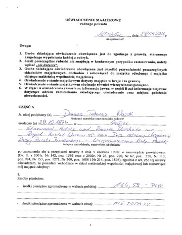 Osoba składająca oświadczenie obowiązana jest określić przynależność poszczególnych