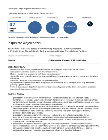 inspektor wojewódzki - Praca w Służbie Cywilnej