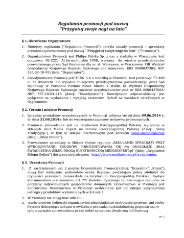 1. Niniejszy regulamin ("Regulamin Promocji") określa zasady promocji – sprzedaży