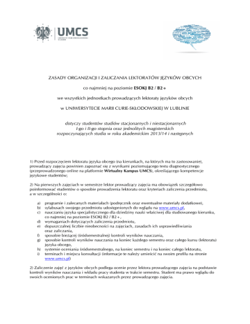 ZASADY organizacji i zaliczania lektoratów jęz. obcych_UMCS
