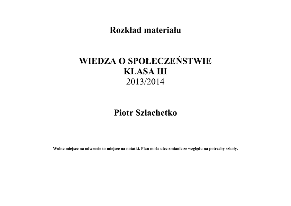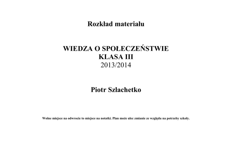Rozkład materiału WIEDZA O SPOŁECZEŃSTWIE KLASA III 2013