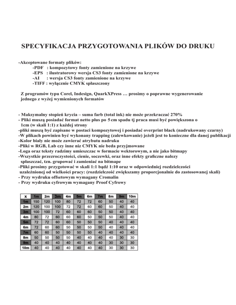 SPECYFIKACJA PRZYGOTOWANIA PLIKÓW DO DRUKU