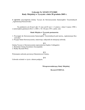 Uchwała Nr XXXIV/272/2005 Rady Miejskiej w Tyczynie z dnia 28