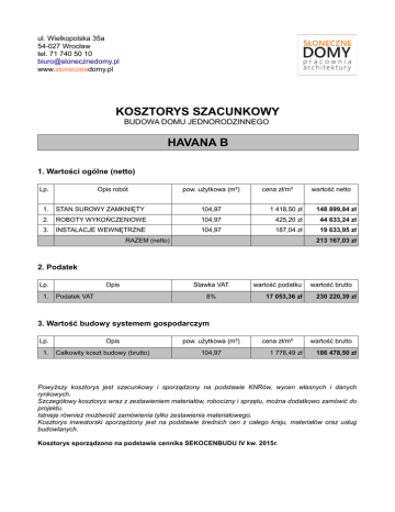 KOSZTORYS SZACUNKOWY HAVANA B
