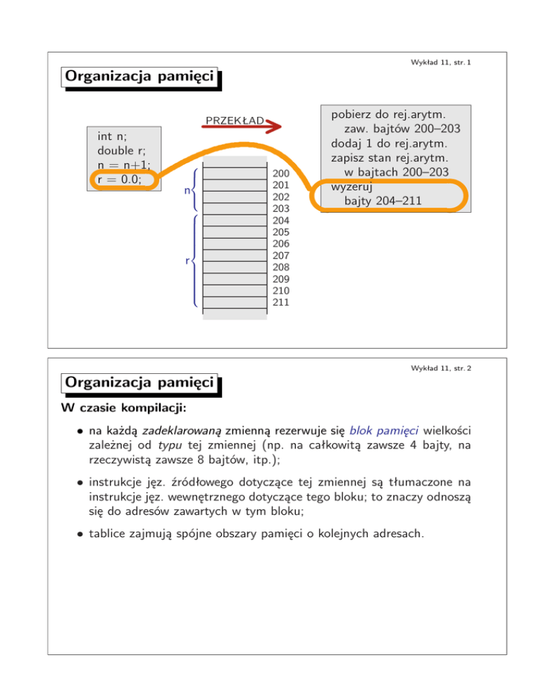 • instrukcje jęz. źródłowego dotyczące tej zmiennej są tłumaczone na