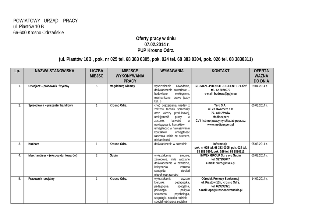 POWIATOWY URZĄD PRACY ul. Piastów 10 B 66