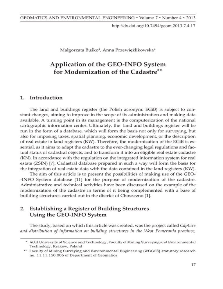 Application of the GEO-INFO System for Modernization of the Cadastre