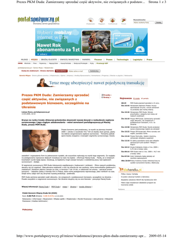 Prezes PKM DUDA: zamierzamy sprzedać część aktywów nie