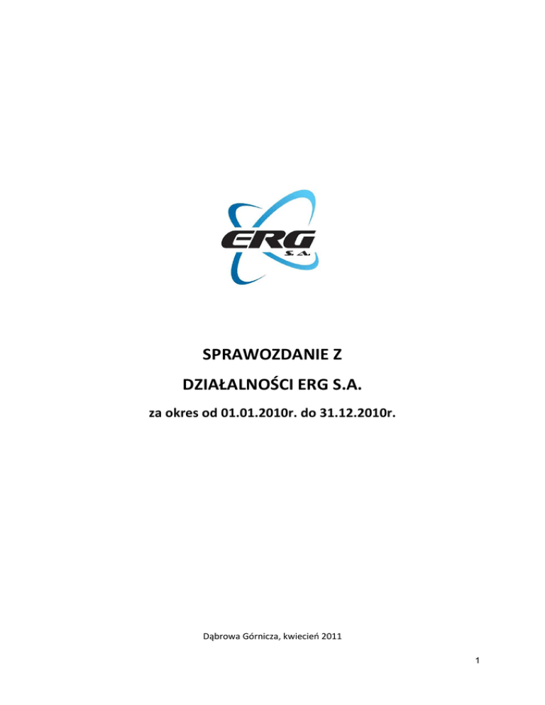 SPRAWOZDANIE Z DZIAŁALNOŚCI ERG S.A.