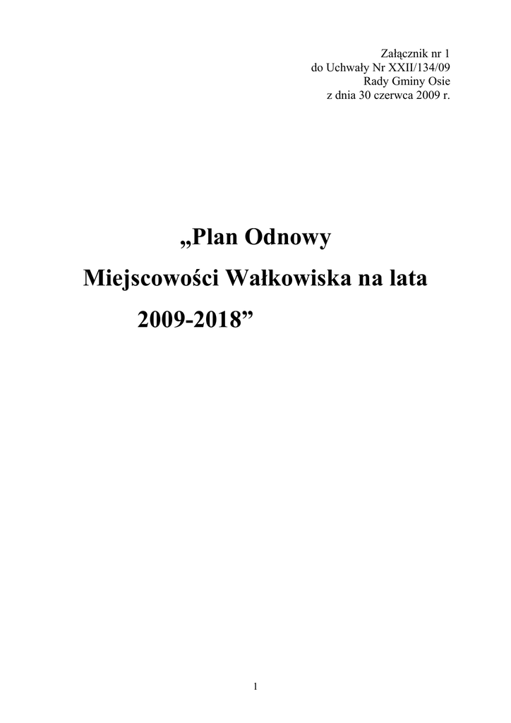 Załącznik nr 1 do Uchwały Nr XXII/134/09 Rady Gminy Osie z dnia 30 czerwca 2009 r. „Plan Odnowy Miejscowości Wałkowiska na lata 2009-2018” 1 SPIS TREŚCI: Charakterystyka obszaru ...................... ....................................................3 Charakterystyka wsi Wałkowiska.............................................................8 Komunikacja .............................................................................................8 Gazownictwo ............................................................................................9 Elektroenergetyka .....................................................................................9 Telekomunikacja .....................................................................................10 Wodociągi i kanalizacja ..........................................................................10 Warunki glebowe i klimatyczne .............................................................11 Wykaz obiektów zabytkowych objętych ochroną ..................................12 Przyroda ..................................................................................................12 Analiza SWOT ......................................................................................13 Kierunki rozwoju ....................................................................................14 Priorytety rozwojowe, cele, projekty ......................................................15 Harmonogram rzeczowo-finansowy .......................................................16 2 CHARAKTERYSTYKA OBSZARU: Obszarem realizacji Planu Odnowy Miejscowości Wałkowiska jest teren wsi Wałkowiska, a czas jego realizacji obejmuje lata 2009 – 2018. a) lokalizacja • Wałkowiska to duża wieś sołecka położona w południowej części gminy, na skrzyżowaniu dróg powiatowych w kierunku z Osia na Świecie i Drzycim, oddalona od Świecia (siedziby powiatu) o ok. 21 km (na płd.). Sąsiednie miejscowości to: na wschód (ok. 3 km Brzeziny); na północ (ok. 4 km Osie), na południe (ok. 1 km Żur). Wieś położona wśród zwartego kompleksu Borów Tucholskich, na północnej stronie doliny Wdy i zbiornika zaporowego w Żurze . b) historia Pierwsze ślady pobytu człowieka na terenie gminy Osie pochodzą ze środkowej epoki kamienia (mezolitu) przypadającej na lata 8000-4300 p.n.e. i odkryto je w okolicach leśniczówki Orli Dwór. Z okresu następnego, to znaczy z neolitu (lata 4200-1700 p.n.e.) pochodzi znaleziona na terenie Osia siekierka z krzemienia pasiastego, natomiast z epoki brązu (1700-650 r.p.n.e.) znalezione w Miedznie, siekierka brązowa i w Osiu urna twarzowa. O pobycie na tym terenie ludzi w następnych epokach świadczą pochodzące z epoki żelaza znaleziska z okolic Osia (bransoletka, szpile z główką łopatkową, szczątki rogu do picia oraz szklane kamyki do gry), a w okolicy Jaszcza znaleziono pochodzący z czasów panowania cesarza Trajana (98-117 r. p.n.e.) srebrny denar rzymski. Okres wędrówki ludów (początek IV w.) spowodował wyludnienie Borów Tucholskich, gęsto zasiedlonych w poprzednich okresach dziejowych. Zjawisko to znalazło swoje odzwierciedlenie również na terenie gminy, bowiem pierwsze wzmianki o osadnictwie na jej terenie pochodzą dopiero z połowy trzynastego wieku i niewiele wskazuje, aby było ono wiele wcześniejsze. Ponowny rozwój osadnictwa na terenach obecnej gminy Osie nastąpił i związany był z intensywną akcją kolonizacyjną zmierzającą do zagospodarowania północnej części kasztelani świeckiej. Początkowo prowadzona była ona wg zasad tzw. Prawa polskiego i z tego okresu pochodzi Miedzno (najprawdopodobniej z początku XIII w.), później na tzw. Prawie niemieckim, a jej efektem było powstanie Osia, Brzezin, Wierzchów, Łążka i młyna w Tleniu. Nastąpiło to w drugiej połowie XIII w. ewentualnie w początkach wieku XIV. W XV wieku powstał Jaszcz, w XVI w. Młyn w Żurze, a w XVII w. Oski Piec i Grzybek. Ich powstanie związane jest z działalnością człowieka, dążącego do wykorzystania zasobów przyrody tego terenu i tworzącego młyny, tartaki i smolamie. Ostatnia faza osadnictwa na terenie gminy związana jest z akcją kolonizacyjną prowadzoną w końcowym okresie istnienia rzeczypospolitej. W jej rezultacie powstały: Pruskie, Stara Rzeka, Sobiny, Gzelowe. Sieć osadniczą uzupełniają miejscowości powstałe w okresie zaboru pruskiego tj. Szarłata, Grabowa Buchta, nieistniejące już dziś Swatno oraz leśniczówki lub rozwinięte z nich osady leśne np. Dębowiec. Nazwy geograficzne na terenie gminy są najczęściej pochodzenia miejscowego i w większości odzwierciedlają cechy środowiska geograficzno-przyrodniczego. Tak więc występują nazwy powstałe od cech terenu: Łążek - od łągu czyli łąki wśród pól, Stara Rzeka od starego koryta Wdy, Wałkowiska - od wyrównanego terenu, Wierzchy od wyrazu wierzch (dawniej wirzch) oznaczającego pagórek, wzniesienie. Od nazw drzew pochodzą nazwy: Osie - od osiki w znaczeniu osikowe, Dębowiec - lasu dębowego, Grabowa Buchta - 3 zakątka, w którym rosną graby, Brzeziny - lasu brzozowego. Nazwy Tleń i Jaszcz wywodzą się od nazw ryb odpowiednio kleń i jazgarz, a właściwie starszej jej formy "jaszcz". Wątpliwości budzi pochodzenie nazwy Miedzno. I tak niektórzy specjaliści z tego zakresu wywodzą ją od słowa "miedza" inni natomiast od wyrazu miód i w tym przypadku miałaby ona oznaczać wieś lub miejsce obfitujące w miód. Wydaje się to bardzo prawdopodobne ze względu na jego do dziś przyleśne położenie oraz fakt, że dopiero w czasach pruskich pozyskanie miodu z leśnych barci zostało zahamowane. Innego typu pochodzenie mają nazwy miejscowości, które rozwinęły się z dawnych młynów. Istniał bowiem w przeszłości zwyczaj nadawania im nazw od nazwisk lub imion pierwszych właścicieli. I tak nazwa Żur pochodziłaby od imienia Żur, Grzybek od nazwiska grzyb lub g
