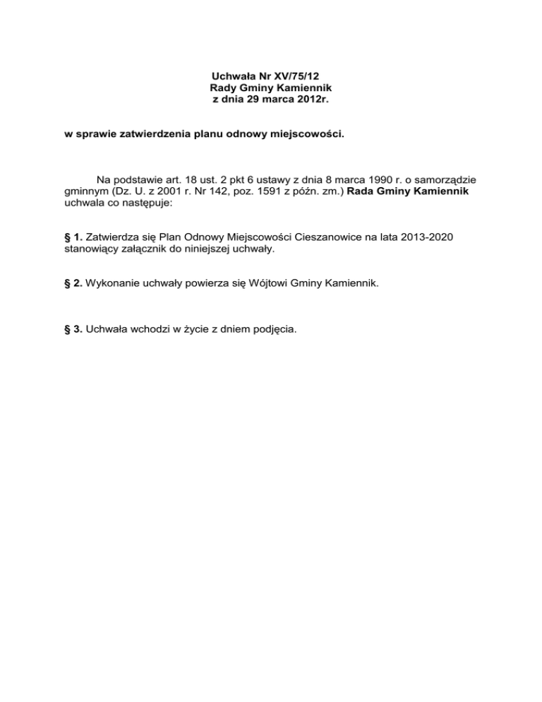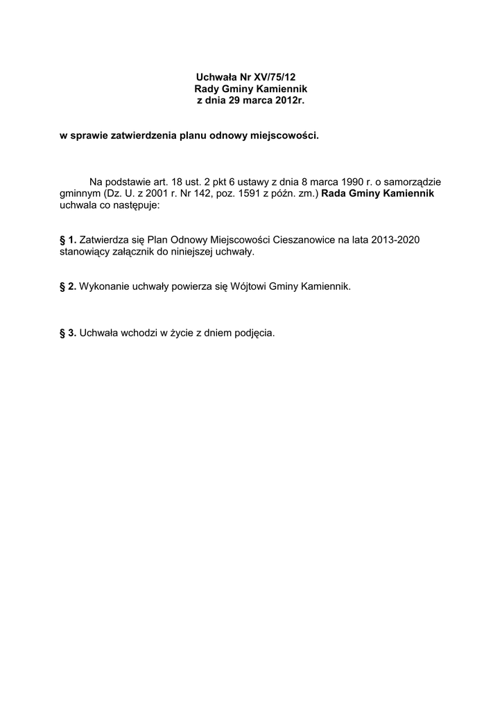 Uchwała Rady Gminy nr XV-75-12 z dn. 29.03.12 w