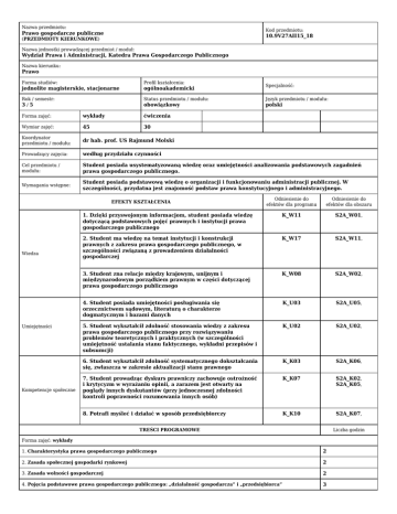 Prawo gospodarcze publiczne - Wydział Prawa i Administracji