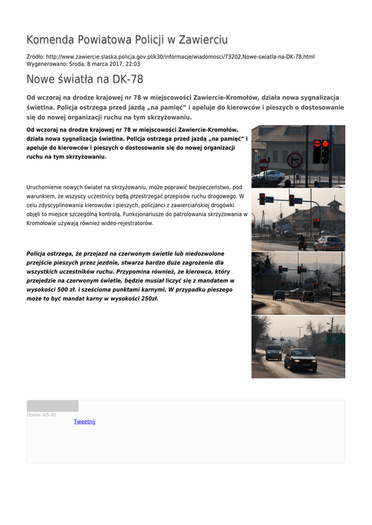 Komenda Powiatowa Policji w Zawierciu Nowe światła na DK-78