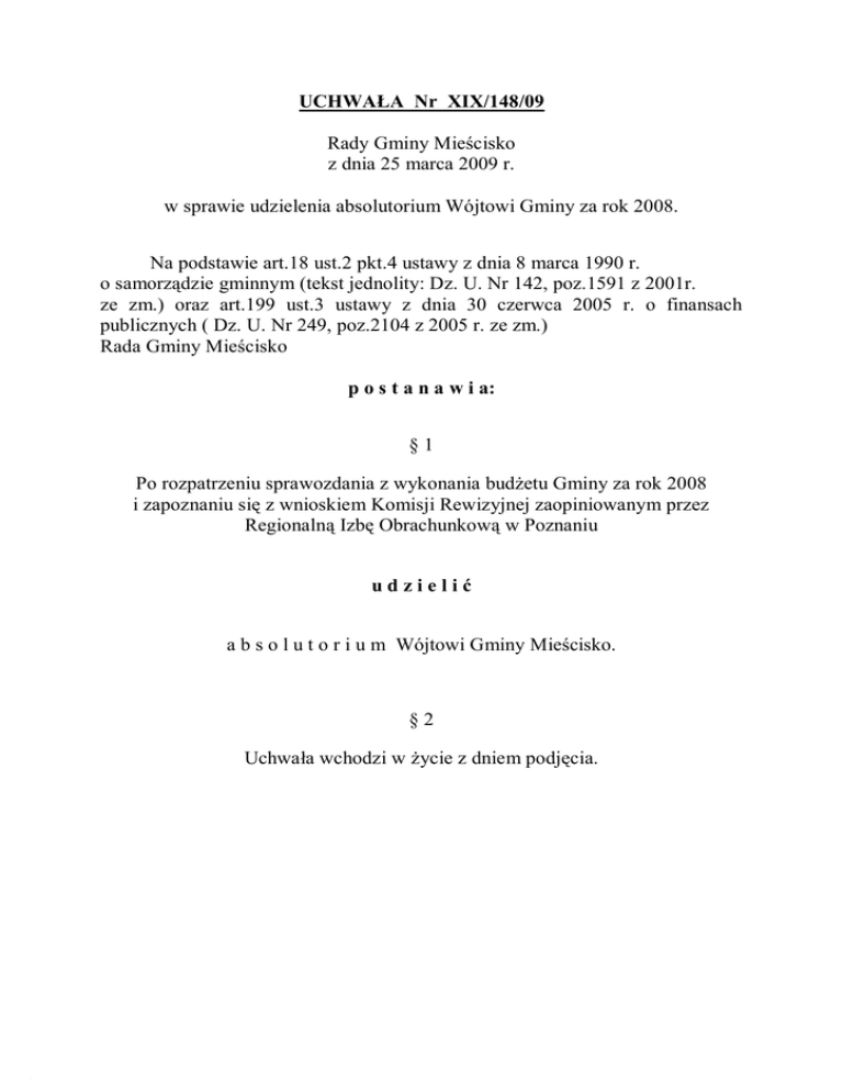 UCHWAŁA Nr XIX/148/09 Rady Gminy Mieścisko z dnia 25 marca