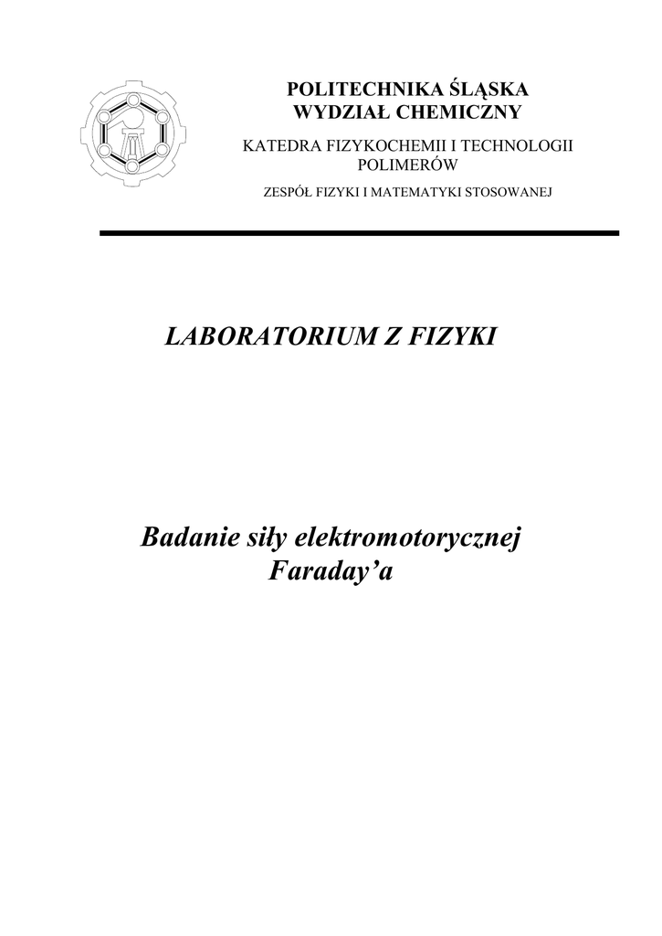 POLITECHNIKA ŚLĄSKA WYDZIAŁ CHEMICZNY KATEDRA FIZYKOCHEMII I TECHNOLOGII POLIMERÓW ZESPÓŁ FIZYKI I MATEMATYKI STOSOWANEJ LABORATORIUM Z FIZYKI Badanie siły elektromotorycznej Faraday’a SIŁA ELEKTROMOTORYCZNA FARADAYA 1. Wprowadzenie Jedną z ciekawych dziedzin fizyki i techniki jest opis działania urządzeń elektromagnetycznych. Wszyscy widzieliśmy silniki i dynama w akcji. Są to urządzenia proste, lecz dla osób niewtajemniczonych wydają się zagadkowe. W tym doświadczeniu pokaŜemy reguły, które rządzą zjawiskami stanowiącymi podstawy działania tych urządzeń. Zjawisko siły elektromotorycznej Faradaya polega na wytwarzaniu siły elektromotorycznej w pętli przewodnika, poruszającej się w polu magnetycznym. Siłę tę opisuje wzór: ε=−dΦ/dt (10.1) gdzie ε jest siłą elektromotoryczną, a Φ jest strumieniem pola magnetycznego zdefiniowanym jako: r r Φ= ∫∫ B • ds (10.2) B jest tutaj indukcją pola magnetycznego, ds jest elementem powierzchni pętli. Całkowanie obejmuje zamkniętą powierzchnię (wnętrze pętli wykonanej z przewodnika), przecinającą pole magnetyczne. Zwróćmy uwagę, Ŝe B i ds są wektorami, a łączy je relacja iloczynu skalarnego. Element powierzchni wyznaczany jest za pomocą wektora normalnego do tej powierzchni, tj. wektora prostopadłego do powierzchni o długości równej polu powierzchni. Widzimy, Ŝe siła elektromotoryczna zaleŜy od szybkości zmian strumienia: jeśli jest duŜy to siła elektromotoryczna jest równieŜ duŜa. Jak jednak zapewnić wielkie zmiany strumienia magnetycznego? Jednym ze sposobów jest wykonywanie doświadczenia w szybki sposób, a drugim jest zwiększenie wielkości strumienia. Jak zwiększyć strumień? W prosty sposób moŜna to zrobić zwiększając indukcję magnetyczną lub zwiększając powierzchnię czynną pętli przewodnika. Następnym pytaniem jest jak wywoływać zmiany w strumieniu magnetycznym by uzyskać siłę elektromotoryczną? Włączanie i wyłączanie elektromagnesu jest pewnym sposobem, ale w ten sposób nie uzyskamy generatora siły elektromotorycznej. Przypomnijmy sobie jaka relacja łączy ds i B we wzorze na strumień? Iloczyn skalarny. Wiemy, Ŝe zaleŜy on od kąta między wektorami. Tę ideę wcielimy w praktykę w doświadczeniu. Pomysł ten wykorzystywany jest równieŜ w silnikach oraz dynamach rowerowych. Zwyczajnie będziemy obracać płaszczyznę z polem magnetycznym i w ten sposób uzyskamy zmienny strumień. Oprócz wspomnianych wyŜej pomysłów istnieje jeszcze jeden sposób wzmocnienia strumienia magnetycznego. Polega on na włoŜeniu w pętlę przewodnika rdzenia ferromagnetycznego. Wzmacnia on przenikalność magnetyczną układu i w ten sposób linie pola magnetycznego ulegają zagęszczeniu w rdzeniu, a ponadto wywołują jego własną magnetyzację co skutkuje większym strumieniem. SIŁA ELEKTROMOTORYCZNA FARADAYA µ H Rys. 1. Wzór na siłę Faradaya moŜna łatwo wyprowadzić z równań Maxwella z pomocą twierdzenia Stokesa, r rotE = ∂B / dt | ∫ ds (10.3) Po scałkowaniu wprowadzamy twierdzenie Stokesa i zmieniamy całkę powierzchniową z rotacją na całkę po obwodzie bez rotacji. Równocześnie całkujemy po powierzchni prawą stronę równania i pamiętając o definicji strumienia uzyskujemy r r r r ∫ rotEds = ∫ E • dl r r = ∂ ∫ B • ds / ∂t = ∂Φ / ∂t (10.4) ZauwaŜamy obecnie, Ŝe pole elektryczne związane jest z potencjałem zaleŜnością: r E = − gradε (10.5) Wstawiając do równania Faradaya uzyskujemy: r r E ∫ • dl = ε = ∂Φ / ∂t (10.6) 2. Pomiary Układ pomiarowy do doświadczenia przedstawiony jest poniŜej. Składa się on z obracającego się magnesu i dwóch cewek. Podczas obracania zmienia się pochodzący od magnesu strumień przenikający przez cewki. Zachodzi to zgodnie z iloczynem skalarnym B z ds. Układ pomiarowy umoŜliwia pomiary wpływu rdzenia ferromagnetycznego cewki na wielkość siły elektromotorycznej, a takŜe pomiary wpływu liczby zwojów. SIŁA ELEKTROMOTORYCZNA FARADAYA e d c b a Rys. 2. Wpływ rdzenia ferromagnetycznego mierzy się na zatrzaskach a i b: do tych zacisków podczas pomiaru podłączamy amperomierz. Następnie rozpoczynamy obracanie magnesu i za pomocą amperomierza obserwujemy tworzenie się siły elektromotorycznej. Rdzeń moŜna wkładać i wyciągać z cewki numer jeden. W celu zaobserwowania wpływu róŜnej liczby zwojów na indukowaną siłę elektromotoryczną moŜemy uŜyć zacisków cd, de i ce. Zaciski te podłączone są do drugiej cewki i obejmują albo całą cewkę (ce), albo jej fragment (cd, de), Pomiary podczas doświadczenia wykonuje się za pomocą mikroamperomierza, zatem aby uzyskać informacje o wygenerowanym napięciu trzeba posłuŜyć się prawem Ohma. Podczas doświadczenia będzie dzięki temu równieŜ okazja do przećwiczenia rozszerzania skali amperomierza przy pomocy opornika. Zaciski amperomierza podłącza się do badanych zacisków układu. Podczas wykonywania obrotów zapisujemy maksymalne wychylenie wskaźnika. Niekiedy zdarza się, Ŝe wskaźnik wychodzi poza skalę przyrządu. Oznacza to, Ŝe prąd, który przez niego przepływa jest zbyt duŜy. NaleŜy go zatem ograniczyć. Ograniczyć moŜna go za pomocą opornika włączonego szeregowo z amperomierzem. Standardowo w kablu amperomierza zainstalowany jest opornik 750Ω. Do dyspozycji mamy dodatkowo opornik R=1MΩ. Gdy podłączymy go szeregowo z amperomierzem prąd zostanie zmniejszony, a wskazówka przestanie wychylać się poza skalę przyrządu. SIŁA ELEKTROMOTORYCZNA FARADAYA KaŜdy pomiar naleŜy powtórzyć 10 razy aby wyeliminować moŜliwe błędy (jeśli pomylimy się 10 razy podczas odczytu, to jest dość prawdopodobne, Ŝe pomyłki się wzajemnie zrównowaŜą i pozostanie tylko wartość /stosunkowo/ dokładna). Podczas pomiarów zbadać naleŜy wszystkie zatrzaski układu. Pomiary powinny być wykonywane przy obrotach w rytmie jednego obrotu na sekund