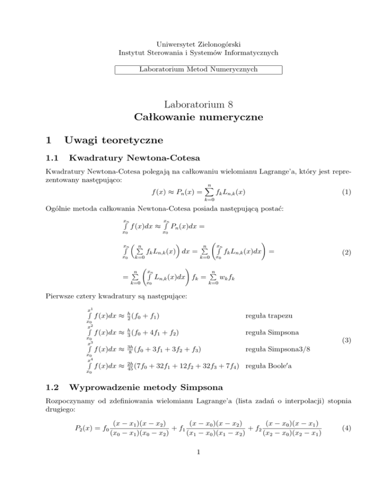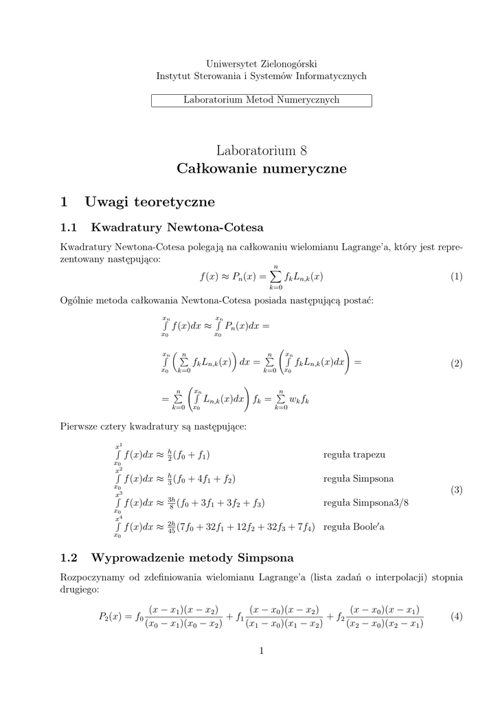 Metody numeryczne - Lab. 8 - Instytut Sterowania i Systemów