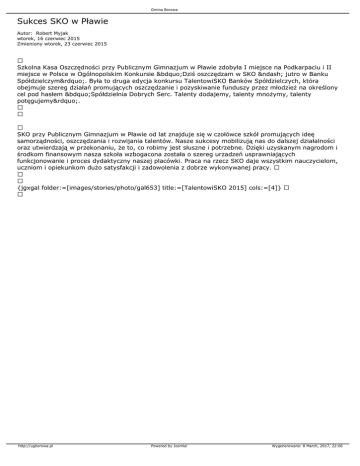 samorządności, oszczędzania i rozwijania talentów. Nasze sukcesy mobilizują nas do dalszej działalności