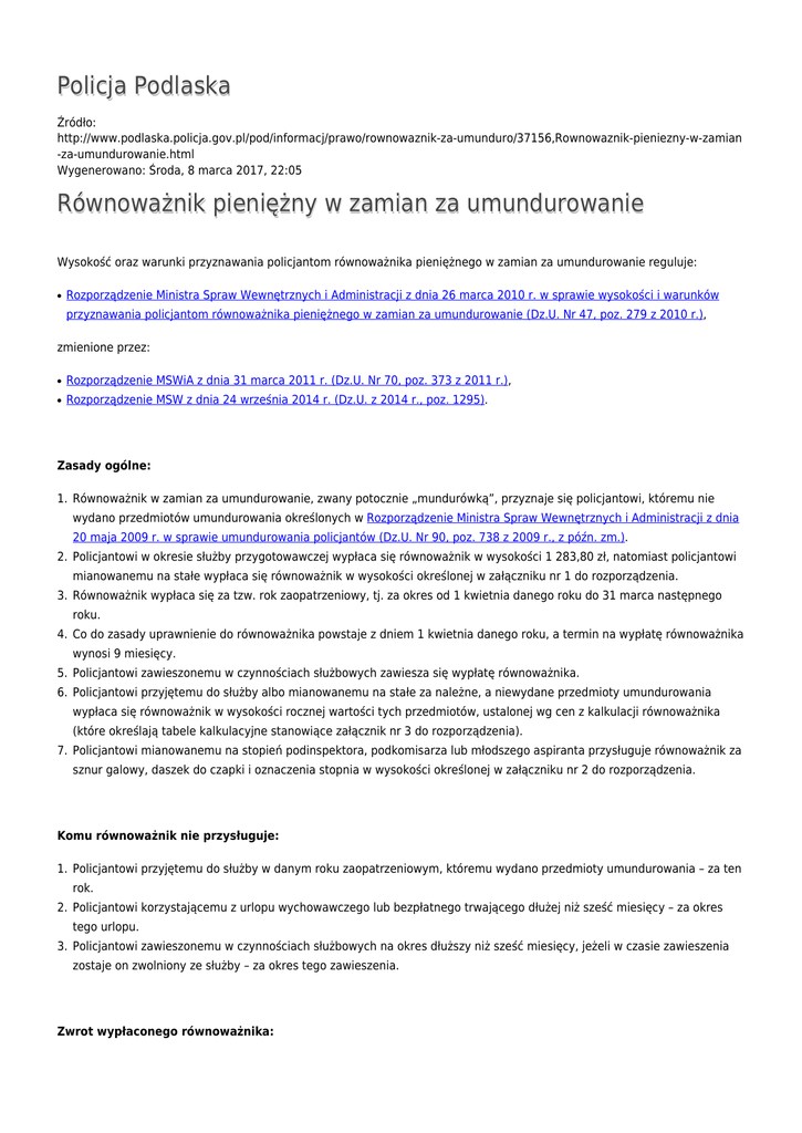 Policja Podlaska Równoważnik pieniężny w zamian za