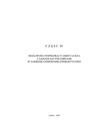 C Z Ę Ś Ć IV MOŻLIWOŚCI WSPÓŁPRACY GMINY ŁUKTA Z SĄSIADUJĄCYMI GMINAMI W ZAKRESIE GOSPODARKI ENERGETYCZNEJ Gdańsk 2009 Projekt założeń do planu zaopatrzenia w ciepło, energię elektryczną i paliwa gazowe dla gminy Łukta C Z Ę Ś Ć IV - SPIS TREŚCI 1. CHARAKTERYSTYKA GMINY ŁUKTA ORAZ SĄSIADUJĄCYCH GMIN......... 3 1.1 POŁOŻENIE I CHARAKTERYSTYKA GMINY ŁUKTA .............................................................................. 3 1.2 CHARAKTERYSTYKA GMIN SĄSIADUJĄCYCH Z GMINĄ WIEJSKĄ ŁUKTA............................................. 6 2. MOŻLIWOŚĆ WSPÓŁPRACY GMINY ŁUKTA Z SĄSIADUJĄCYMI GMINAMI W ZAKRESIE GOSPODARKI ENERGETYCZNEJ ............................ 11 2.1 2.2 2.3 2.4 2.5 ZAOPATRZENIE W CIEPŁO ................................................................................................................ 11 ZAOPATRZENIE W ENERGIĘ ELEKTRYCZNĄ ...................................................................................... 11 ZAOPATRZENIE W PALIWA GAZOWE ................................................................................................ 11 ODNAWIALNE ŹRÓDŁA ENERGII (OZE)............................................................................................ 12 UWAGI I WNIOSKI ............................................................................................................................ 13 2 Fundacja Poszanowania Energii w Gdańsku ♦ 2009 ♦ Projekt założeń do planu zaopatrzenia w ciepło, energię elektryczną i paliwa gazowe dla gminy Łukta 1. CHARAKTERYSTYKA GMINY ŁUKTA ORAZ SĄSIADUJĄCYCH GMIN 1.1 Położenie i charakterystyka gminy Łukta Gmina Łukta położona jest w zachodniej części województwa warmińsko-mazurskiego, w północno-wschodniej części powiatu ostródzkiego. Gmina zlokalizowana jest na pograniczu Pojezierza Wschodniopomorskiego (Pojezierze Iławskie) i Pojezierza Mazurskiego (Pojezierze Olsztyńskie). Gmina Łukta sąsiaduje bezpośrednio z sześcioma gminami. Od strony północnej gmina Łukta graniczy z gminą wiejską Świątki, od strony wschodniej z gminą Jonkowo i Gietrzwałd, od strony południowej z gminą wiejską Ostróda, od strony zachodniej z gminą miejsko-wiejska Miłomłyn, natomiast od strony północno-zachodniej z gminą miejsko-wiejską Morąg. Lokalizację gminy Łukta przedstawiono na rysunku nr 1.1. Na obszarze gminy zlokalizowanych jest 36 miejscowości wiejskich zgrupowanych w 16 sołectwach. Siedziba gminy zlokalizowana jest w miejscowości Łukta. Gmina liczy ok. 4,54 tys. mieszkańców, przy czym w miejscowości Łukta zamieszkuje 1,25 tys. mieszkańców, natomiast w pozostałych miejscowościach ok. 3,27 tys. mieszkańców. Gmina zajmuje powierzchnię 184,7 km2 Gęstość zaludnienia wynosi blisko 25 osób na 1 km2. Do największych miejscowości wiejskich gminy należą: Łukta, Florczaki, Ględy, Mostkowo, Ramoty, Pelnik, Molza i Komorowo. Na terenie gminy użytki rolne zajmują 5,46 tys. ha, co stanowi około 29,4% ogólnej powierzchni gminy (w tym grunty orne stanowią 3,75 tys. ha), tereny leśne, zadrzewienia i grunty leśne zajmują 10,24 tys. ha (55,1%), natomiast nieużytki, wody, tereny zabudowane i komunikacyjne zajmują 2,77 tys. ha (14,9%). Gmina ma charakter rolniczy, usługowy i turystyczny. Większość mieszkańców prowadzi własne gospodarstwa rolne lub pracuje w różnych sektorach przemysłu (spożywczy i leśny) usług i handlu. Na terenie gminy zlokalizowanych jest kilka większych oraz kilkadziesiąt mniejszych zakładów produkcyjno-usługowych. Gmina Łukta nie posiada własnej bazy surowców energetycznych. Na jej terenie nie występują udokumentowane złoża ropy naftowej, gazu ziemnego oraz innych paliw kopalnych. Na terenie miejscowości Łukta zlokalizowany jest jeden większy lokalny system ciepłowniczy oraz kilka mniejszych przemysłowych systemów ciepłowniczych, natomiast na pozostałych terenach gminy takie systemy nie występują. Aktualnie brak jest możliwości bezpośredniej współpracy gminy Łukta z sąsiadującymi gminami w zakresie zaopatrzenia w energię cieplną – brak jest możliwości przesyłanie czynnika grzewczego w ramach lokalnych systemów ciepłowniczych. Teren gminy Łukta nie jest zgazyfikowany, natomiast aktualnie Urząd Gminy Łukta opracowuje plan gazyfikacji wybranych terenów gminy. Istnieje możliwość współpracy gminy Łukta z sąsiadującymi gminami, w szczególności z gminą wiejską Ostróda i 3 Fundacja Poszanowania Energii w Gdańsku ♦ 2009 ♦ Projekt założeń do planu zaopatrzenia w ciepło, energię elektryczną i paliwa gazowe dla gminy Łukta gminą miejsko-wiejską Morąg, w zakresie doprowadzenia gazu ziemnego do wybranych miejscowości wyżej wymienionych gmin. Urząd Gminy Łukta rozważa możliwość gazyfikacji wybranych rejonów gminy Łukta (głównie miejscowość Łukta) w perspektywie najbliższych kilku lat, w oparciu o technologię LNG. W takim przypadku, zostałby zbudowany lokalny system sieci gazowych średniego i niskiego ciśnienia, który w pierwszym okresie eksploatacji rozprowadzałby gaz ziemny po uprzednim rozprężeniu z fazy ciekłej do fazy gazowej w stacji redukcyjno-pomiarowej LNG. W zakresie zaopatrzenia w energię elektryczną gminy powiatów: ostródzkiego, olsztyńskiego i iławskiego współpracują przy rozbudowie i modernizacji systemów elektroenergetycznych, stanowiących wspólną infrastrukturę gmin. Gminy zainteresowane są reelektryfikacją i prowadzeniem prac modernizacyjnych, które w znaczący sposób mogą poprawić bezpieczeństwo dostaw energii elektrycznej. Na terenie gminy Łukta eksploatowana jest jedna duża osiedlowa kotłownia i dwie lokalne kotłownie na biomasę. Poza wymienionymi źródłami ciepła na terenie gminy praktycznie brak jest innych urządzeń energetycznych większej mocy, które mogłyby być zaliczane do grupy odnawialnych źródeł energii (OZE), tj. źródeł wykorzystując