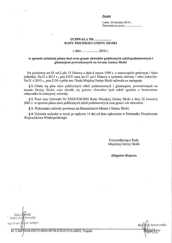 wykpi³o z wnioskiem o wrzenie tej szko³y do sieci publicznych szkó³ i ustalenie jej obwodu ,