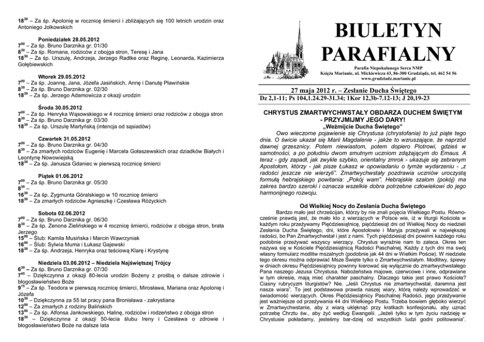 biuletyn parafialny - Parafia Niepokalanego Serca Najświętszej