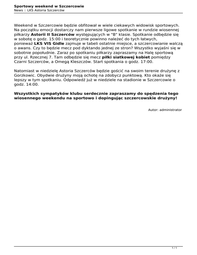 Sportowy weekend w Szczercowie