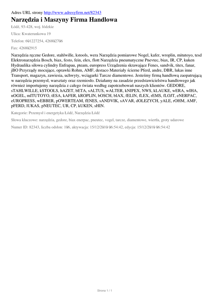 Narzedzia i Maszyny Firma Handlowa, Lodz