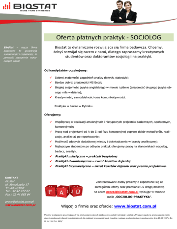 Oferta płatnych praktyk - socjolog