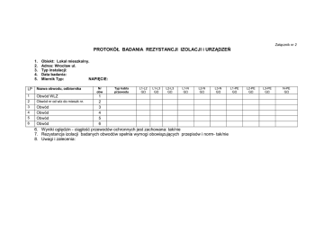 PROTOKÓŁ BADANIA REZYSTANCJI IZOLACJI i URZĄDZEŃ