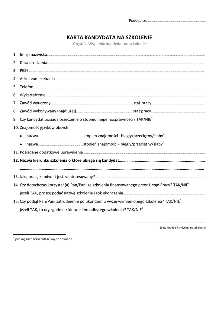 Karta kandydata na szkolenie