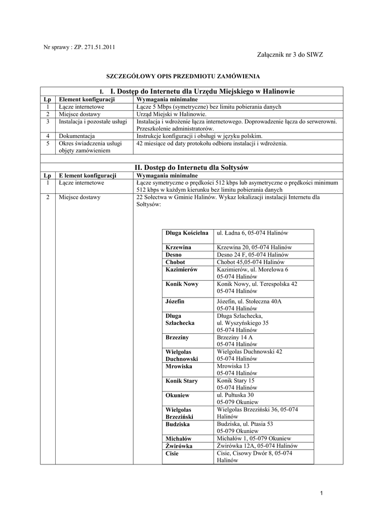 I. I. Dostęp do Internetu dla Urzędu Miejskiego w Halinowie II