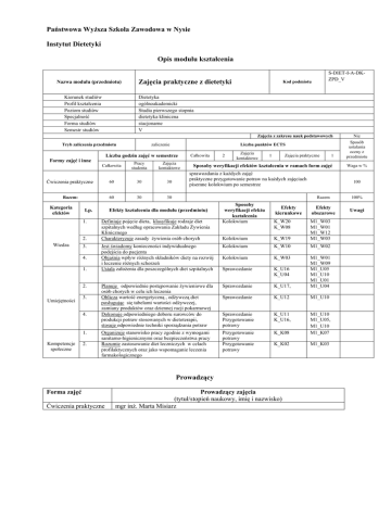 Państwowa WyŜsza Szkoła Zawodowa w Nysie Instytut Dietetyki