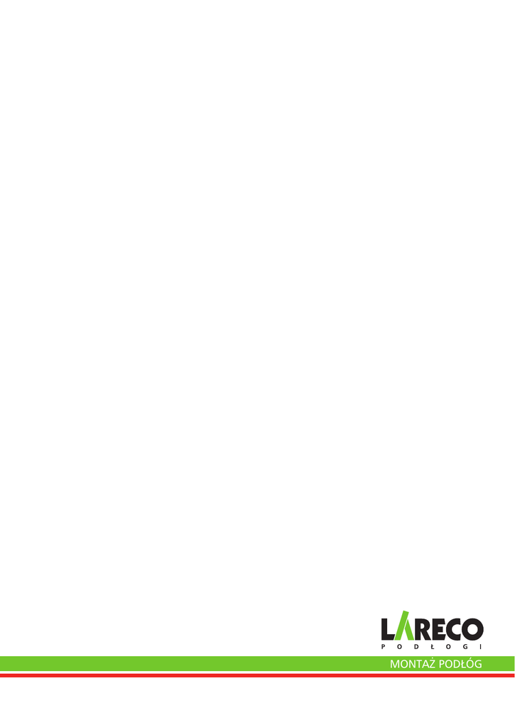 MONTAŻ PODŁÓG MONTAŻ PODŁÓG SPIS TREŚCI Informacje ogólne Montaż desek na klej do podłoży mineralnych 3 4-5 Montaż na gwoździe do podłoża drewnianego 6 Montaż desek na ogrzewanie podłogowe 7 LARECO | ul. Kościuszki 69, 17-300 Siemiatycze, tel. +48 85 655 34 46, fax.: +48 85 655 37 23, www.lareco.pl 2 MONTAŻ PODŁÓG INFORMACJE OGÓLNE MONTAŻ PODŁÓG, MONTAŻ POPRZEZ PRZYKLEJENIE, MONTAŻ NA PODŁOGI „ŚLEPE”, MONTAŻ NA OGRZEWANIE PODŁOGOWE Montaż drewnianych desek podłogowych można rozpocząć po zakończeniu wszystkich prac budowlanych i wykończeniowych. Przed przystąpieniem do montażu podłóg LARECO należy zapoznać się z informacjami dotyczącymi montażu i użytkowania podłóg. W sytuacjach nie opisanych należy niezwłocznie kontaktować się z producentem lub salonem sprzedaży w celu zaciągnięcia informacji. Pomieszczenie musi być suche oraz winno posiadać sprawny system wentylacyjny. Drzwi wewnętrzne należy zainstalować po zamontowaniu podłogi (chyba, że producent drzwi zaleca inaczej). Przed przystąpieniem do montażu należy dokonać kontrolnego przeglądu wszystkich desek. Wszystkie widoczne wady powinny być zgłoszone do sprzedawcy, a deski, na których je wykryto, odłożone na bok i ewentualnie wykorzystane na docięcia, jeśli będzie to możliwe. Różnice w odcieniach: z uwagi na naturalny charakter desek, gwarancja nie obejmuje ewentualnych różnic w odcieniach pomiędzy wzornikami, próbkami czy katalogami, a poszczególnymi partiami materiału, jak również zmian odcieni drewna w trakcie długoletniej eksploatacji, wynikających z naturalnych procesów dojrzewania drewna (np. na skutek działania promieni UV). Prezentowane w salonach sprzedaży próbniki mają poglądowo zaprezentować dany model podłogi. Pomiędzy próbnikami, a dostarczonym towarem mogą występować różnice będące skutkiem: starzenia się próbników, innym charakterem usłojenia drewna, różnicami w partii dostępnego surowca, różnicami w mineralizacji słojów, różnicami wynikającymi z otoczenia, oświetlenia etc. Niektóre z naszych modeli podłóg poddane są skomplikowanym sposobom obróbki np. termicznej, są to podłogi modyfikowane. Modele takie oprócz okresu tzw. dojrzewania koloru charakteryzują się również wysoką rozpiętością kolorystyczną. Deski takie pomimo różnorodności tworzą spójna całość. Przy montażu takich modeli podłóg nie wolno próbować przebierać drewna z punktu widzenia intensywności odcienia. Deski należy w jak najbardziej różnorodny i spontaniczny sposób rozłożyć na całej powierzchni podłogi tak aby w całokształcie tworzyły jedna strukturę. Podczas montażu należy brać pod uwagę aspekt estetyczny końcowego efektu. Deski w duży sposób odbiegające charakterem od reszty partii należy odłożyć na bok, bądź o ile to możliwe po docięciu wykorzystać przy kolejnym rzędzie podłogi. Każde zamówienie jest realizowane indywidualnie, w całości w stałych warunkach dla jednego konkretnego klienta, różnice w kolorystyce i odcieniu są wyłącznie skutkiem naturalnych różnic występujących w drewnie. Nie będą brane pod uwagę roszczenia z tytułu takich defektów i uszkodzeń, które powinny być zauważone i zgłoszone przed instalacją podłogi. W celu aklimatyzacji desek, zamknięte opakowania zaleca się pozostawić w pomieszczeniu, w którym podłoga będzie montowana, na przynajmniej 48 godzin (w okresie zimowym nawet do 6 dni). Paczki należy ułożyć poziomo na paletach lub równych przekładkach. Nie zaleca się składowania paczek bezpośrednio na posadzce betonowej. Uszkodzone opakowania należy od razu ponownie szczelnie zamknąć. Podłogę należy montować bezpośrednio po otwarciu opakowań. Nasze podłogi są przeznaczone wyłącznie do zastosowania wewnątrz pomieszczeń. W celu zagwarantowania najwyższej jakości zalecamy: a) montaż podłogi na podłożach takich jak: • profesjonalnie wykonane podłoże z płyt drewnianych • profesjonalnie wykonany podkład cementowy lub anhydrytowy • trwale zamocowana podłoga z litego drewna (np. parkiet lub stare deski podłogowe) b) zastosowanie odpowiedniego systemu gruntów i kleju od jednego renomowanego producenta, dostosowanych do rodzaju podłoża i wielkości klejonych elementów i gatunku drewna. LARECO | ul. Kościuszki 69, 17-300 Siemiatycze, tel. +48 85 655 34 46, fax.: +48 85 655 37 23, www.lareco.pl 3 MONTAŻ PODŁÓG MONTAŻ DESEK NA KLEJ DO PODŁOŻY MINERALNYCH Przed przystąpieniem do układania podłogi należy: przy pomocy higrometru [CM] sprawdzić stopień wilgotności podłoża, wykonując wgłębienie na całej jego grubości. Badaniu należy poddać materiał z 1/3 dolnej części podłoża. Poziom wilgoci nie może przekraczać 2% wg metody CM w przypadku podłoża cementowego i 0,5% w przypadku podłoża anhydrytowego. Podłoże powinno być mocne, suche i równe, wykonane zgodnie z Warunkami Technicznymi Wykonania i Odbioru Robót Budowlanych wydanymi przez Instytut Techniki Budowlanej w Warszawie. Podczas pomiarów podłoża należy spisać protokół pomiarowy potwierdzający wyniki pomiarów w obecności Inwestora lub osoby upoważnionej. Wszelkie nierówności powyżej 2 mm na długości 2 metrów powinny być zniwelowane przed rozpoczęciem montażu, równość wylewki należy sprawdzić używając poziomicy o długości co najmniej 2 metrów. W razie konieczności należy przyciąć drzwi i obramowania, aby dopasować je do nowego poziomu podłogi. Jeżeli podłoga drewniana będzie bezpośrednio stykać się z podłogą wykonaną np. z płytek ceramicznych, należy wówczas uwzględnić ich grubość. Przed montażem podłogi należy sprawdzić czy wilgotność drewna jest zgodna z zalecaną. Wilgotność podłóg drewnianych litych wynosi 9±2% (PN-EN13226) pomiaru można dokonać urządzeniem inwazyjnym. Pomiaru należy dokonać przy użyciu odpowiedniego higrometr
