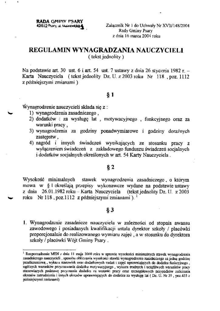 w szkole . Wojt Gmioy Psary moze zwoliuc nauczyciela w calosci lub w cz^sci