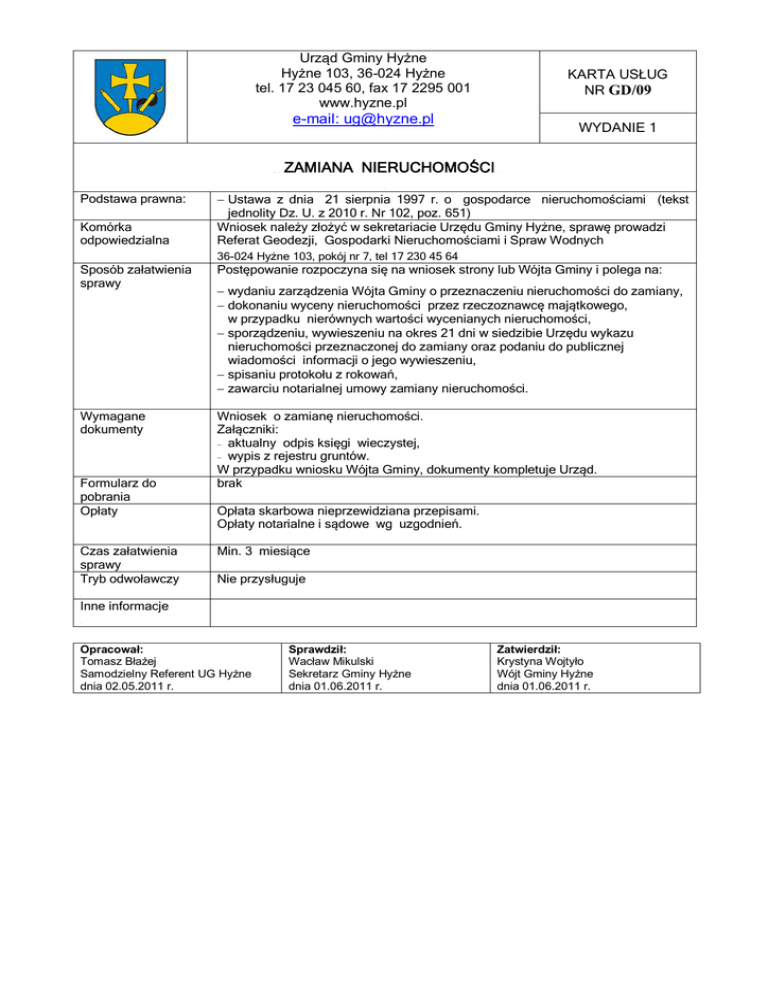 e-mail: NR GD/09 ZAMIANA NIERUCHOMOŚCI