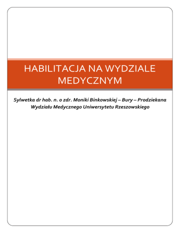 HABILITACJA NA WYDZIALE MEDYCZNYM Sylwetka dr hab. n. o zdr. Moniki Binkowskiej – Bury – Prodziekana Wydziału Medycznego Uniwersytetu Rzeszowskiego Monika Binkowska – Bury urodziła się 1 kwietnia 1969 roku w Radoszycach, jako córka Ryszarda i Agnieszki Michalskiej. W 1989 roku ukończyła V - letnie Liceum Medyczne w Kielcach uzyskując dyplom pielęgniarki. Marząc o studiach pielęgniarskich z uwagi na wymogi legislacyjne (obowiązek minimum 1 roku pracy w zakładach opieki zdrowotnej na stanowisku pielęgniarki przed możliwością przystąpienia do egzaminów wstępnych i rekrutacji na uczelnie wyższe kształcące na kierunku pielęgniarstwo) zobowiązana była podjąć pracę w Oddziale Ginekologii Operacyjnej Szpitalu Miejskim w Kielcach. Następnie podjęła studia magisterskie w Akademii Medycznej w Lublinie na kierunku pielęgniarskim pozwalające rozwijać jej zainteresowanie medycyną a w szczególności holistyczną opieką nad człowiekiem zdrowym i chorym, które ukończyła regulaminowo w 1994 roku. HABILITACJA NA WYDZIALE MEDYCZNYM | 2015-06-22 Karierę zawodową rozpoczęła od 1989 roku awansując kolejno na wielu stanowiskach w zakresie realizacji praktyki pielęgniarskiej oraz pełniąc funkcje kierownicze w systemie opieki zdrowotnej min: stażystki w Szpitalu Specjalistycznym w Końskich, kierownika Sekcji Szkolenia Średniego Personelu Medycznego w Wojewódzkim Ośrodku Doskonalenia Kadr Medycznych w Rzeszowie, naczelnej pielęgniarki Obwodu Lecznictwa Kolejowego w Rzeszowie, reprezentanta medycznego w firmie farmaceutycznej Bioton czy Kierownika Działu Zamiejscowego Branżowej Kasy Chorych dla Służb Mundurowych w Rzeszowie. Od początku pracy zawodowej odznaczała się cechami przywódczymi a we współpracy dała się poznać jako osoba zaangażowana niezwykle kreatywna o wielkiej wrażliwości. Realizując się zawodowo dbała także o ciągły rozwój. W 1997 roku uzyskała pierwszy stopień specjalizacji w zakresie Medycyny Społecznej a w 2000 roku – drugi stopień specjalizacji w zakresie Organizacji Ochrony Zdrowia. 1 W 2004 roku Pani doktor Monika Binkowska - Bury związała się na stałe z Uniwersytetem Rzeszowskim. Wraz z śp. charyzmatycznym Dyrektorem, profesorem Wrzesławem Romańczukiem pomagała w utworzeniu nowych kierunków kształcenia: pielęgniarstwa i położnictwa. Później współuczestniczyła w utworzeniu Instytutu Pielęgniarstwa i Położnictwa, a następnie Instytutu Pielęgniarstwa i Nauk o Zdrowiu, wnosząc swoją wiedzę medyczną, zdolności organizacyjne, naukowe oraz talent pedagogiczny. Pracę naukową na Uniwersytecie Rzeszowskim inspirowaną przez wieloletniego opiekuna Prof. dr hab. n med. Pawła Januszewicza uwieńczyła w 2007 roku obroną pracy doktorskiej pod kierunkiem dr hab. Marka Motyki pt. ,,Poczucie koherencji a wzory zachowań związanych ze zdrowiem’’ uzyskując tytuł doktora nauk medycznych na Wydziale Pielęgniarstwa Akademii Medycznej w Lublinie. Jednocześnie od 2004 roku pełniła funkcję zastępcy dyrektora Instytutu oraz kierownika Zakładu Podstaw Opieki Pielęgniarskiej, dbając ciągle o jego dalszy rozwój. Wynikiem Jej starań jest możliwość kontynuacji kształcenia na kierunkach pielęgniarstwo i położnictwo – studia II stopnia oraz powołanie w strukturach Instytutu nowych kierunków: ratownictwa medycznego, zdrowia publicznego, elektroradiologii. Dorobek naukowy dr n. med. M Binkowskiej – Bury obecnie obejmuje opublikowanych 101 prac w tym 2 autorskich monografii o łącznej punktacji KBN/MNiSZW: 714, w tym 14 prac znajdujących się w czasopismach z listy filadelfijskiej o łącznym współczynniku oddziaływań 20,223 IF. Liczba cytowań jej publikacji wynosi według bazy Web of Science 31, Index Hirsza – 5. Zainteresowania naukowe skupiają się głównie na zainteresowaniach dotyczących: problematyki monitorowania zachowań zdrowotnych zarówno prozdrowotnych jak i ryzykownych w populacji osób młodych, problematyki stosowania leków i ich fałszerstw w aspekcie zdrowia publicznego oraz sytuacji społeczno – zawodowej pielęgniarek i ich roli w kształceniu akademickim. W działalności naukowej Pani doktor szczególnie zwraca uwagę na priorytety polityki zdrowotnej oraz potrzeby, jakie wyodrębniają się na tle naszego społeczeństwa, określenia udziału pielęgniarek w realizacji świadczeń zdrowotnych w różnych obszarach ochrony zdrowia. Pracy naukowej Pani doktor zawsze ,,krytycznie’’ przyglądał się Prof. dr hab. n. med. Józef Ryżko, który zawsze służył wsparciem na każdym etapie jej rozwoju. Brała udział w pięciu projektach naukowych i innych programach międzynarodowych i krajowych min: udział projekcie z zakresu żywienia małych dzieci „Badanie żywieniowe dzieci w wieku 2-3 lat w województwie podkarpackim” - 2009 r., Grant Rektorski „Problem fałszowania produktów leczniczych: opinie pielęgniarek, lekarzy i pacjentów podstawowej opieki zdrowotnej” – 2009 r., Project No: 11120061 „International Symposium: Nursing professionalization as an indicator of nursing cares quality”. Participating partners: Constantine the Philosopher University in Nitra (Slovakia), Debrecen University (Hungary) - Kierownik Grantu z Funduszu Wyszehradzkiego, Projekt pomiędzy UR a Fundacją Polsat pt: „Racjonalizacja stosowania antybiotyków przez lekarzy podstawowej opieki zdrowotnej w ostrym zapaleniu gardła i/lub migdałków u dzieci i młodzieży od 2. do 15. roku życia – program pilotażowy realizowany w woj. podkarpackim” - Wykonawca merytoryczno-naukowy projektu – 2013 i inn. Jest wykonawcą licznych tematów badawczych z zakresu zdrowia publicznego i opieki pielęgniarskiej. Dotychczas wygłosiła 12 referatów na konferencjach międzynarodowych i 30 na konferencjach krajowych. Uczestniczyła w programach europejskich takich jak: PROGRAM PHARE PL 2002/000-580.02.07.03/02 Realizacja studiów pomostowych w roku akadem