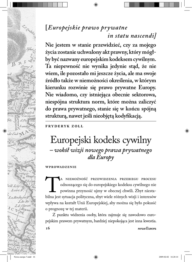 [Europejskie prawo prywatne in statu nascendi] Nie jestem w stanie przewidzieć, czy za mojego życia zostanie uchwalony akt prawny, który mógłby być nazwany europejskim kodeksem cywilnym. Ta niepewność nie wynika jedynie stąd, że nie wiem, ile pozostało mi jeszcze życia, ale ma swoje źródło także w niemożności określenia, w którym kierunku rozwinie się prawo prywatne Europy. Nie wiadomo, czy istniejąca obecnie sektorowa, niespójna struktura norm, które można zaliczyć do prawa prywatnego, stanie się w końcu spójną strukturą, nawet jeśli nieobjętą kodyfikacją. Europejski kodeks cywilny – wokół wizji nowego prawa prywatnego dla Europy T odnoszącego się do europejskiego kodeksu cywilnego nie powinna przynosić ujmy w obecnej chwili. Zbyt niestabilna jest sytuacja polityczna, zbyt wiele różnych wizji i interesów wpływa na kształt Unii Europejskiej, aby można się było pokusić o prognozę w tej materii. Z punktu widzenia osoby, która zajmuje się zawodowo europejskim prawem prywatnym, bardziej niepokojąca jest inna kwestia. Nowa europa 7.indd 16 2009-02-02 16:20:14 Otóż ja właściwie nie jestem pewny, czy europejski kodeks cywilny jest rzeczą pożądaną. Czy będzie to akt, który w zasadniczy sposób wpłynie na polepszenie funkcjonowania prawa prywatnego w państwach tworzących Unię? Można by twierdzić, że od osoby zajmującej się właśnie tą dziedziną należałoby oczekiwać jasnego stanowiska w tej kwestii. Myślę jednak, że niepewność w tej materii także jest usprawiedliwiona obecnym stanem rzeczy i niejednoznacznością ocen dotyczącą funkcjonowania narodowych kodyfikacji. Na kwestię tego, czy europejski kodeks cywilny byłby pożądanym sposobem uregulowania prawa prywatnego w Europie, składa się cały szereg różnych problemów. Dzielą się one na dwie zasadnicze grupy. Pierwsza grupa dotyczy pytania o sens kodyfikacji jako metody regulacji stosunków cywilnoprawnych. Druga grupa pytanie to powtarza już w czysto europejskim kontekście – czy kodyfikacja prawa prywatnego na szczeblu europejskim może mieć sens? Dopiero pozytywna odpowiedź na te dwa pytania pozwala przejść do następnej kwestii, jaką jest pytanie o polityczne szanse powodzenia takiego projektu. Badając przy tym sensowność projektu europejskiej kodyfikacji, należy także zastanowić się nad tym, czy istnieją alternatywne rozwiązania, pozwalające na osiągnięcie celów stawianych przed europejską kodyfikacją przy użyciu innych środków, być może mniej efektywnych (lub efektownych), ale za to politycznie realistycznych. Jednak także i tu powstaje problem braku jedności w ujmowaniu celu zarówno samej Unii, jak i jej porządku prawnego. W artykule tym pragnę zastanowić się nad pożądanym kierunkiem europejskiej regulacji prawa prywatnego. Będą to jednak tezy bardzo wstępne i raczej mające charakter prowizorycznych założeń niż w pełni wypracowanych koncepcji rozwiązań. – Polityczny impuls do podjęcia prac nad europejskim kodeksem cywilnym pochodził z Parlamentu Europejskiego, który w dwóch rezolucjach z 1989 r. i z 1994 r. wezwał do podjęcia prac nad Europejskim () / Nowa europa 7.indd 17 2009-02-02 16:20:14 kodeksem prawa prywatnego1. Wezwanie to zostało podjęte przez świat nauki. Obradująca pod przewodnictwem Ole Lando Komisja ds. europejskiego prawa umów przygotowała i na zakończenie swoich prac opublikowała Zasady europejskiego prawa umów (Principles of European Contract Law)2. Jednak w miejsce rozwiązanej Komisji Lando zawiązano kolejną grupę badawczą pod charakterystyczną nazwą: Grupa Studyjna nad Europejskim Kodeksem Cywilnym. Grupa ta, istniejąca do dzisiaj, rozwija zasady europejskiego prawa umów, obejmując nimi coraz to nowe dziedziny nie tylko prawa kontraktów, ale także zobowiązań w ogólności, a także innych działów prawa cywilnego (np. rzeczowych zabezpieczeń kredytowych). Grupa Studyjna ma obecnie stosunkowo zdecentralizowaną postać wielu grup pracujących nad poszczególnymi zagadnieniami, zachowała jednak organy koordynujące całą pracę – czyli przede wszystkim Komitet Koordynacyjny (CoCo). Grupa Studyjna stara się znaleźć wśród rozmaitych rozwiązań, występujących zwłaszcza w europejskich systemach prawnych, a także w coraz większym stopniu w prawie wspólnotowym, optymalne rozwiązania. Mimo że pierwotnie założeniem było poszukiwanie rozwiązań w największym stopniu odzwierciedlających tradycję różnych rozwiązań przyjętych w Europie, to w praktyce poszukiwano norm w ocenie autorów najlepszych. Obok Grupy Studyjnej istnieje druga grupa, która poświęca swoją uwagę przede wszystkim prywatnemu prawu wspólnotowemu. Jest to tzw. Grupa Acquis, czyli Grupa Badawcza nad Istniejącym Prawem Prywatnym Wspólnoty3. Grupa ta podjęła się zadania stworzenia systemu norm oddających w najlepszy sposób treść, idee i zasady, które wynikają już z obowiązującego europejskiego prawa wspólnotowego. Pierwszy etap pracy tej grupy zakończył się wydaniem przedwstępnej wersji projektu Contract I, w której znalazł się zespół reguł wyprowadzonych z prawa wspólnotowego, obejmujących zawarcie umowy, fazę przedkontraktową, prawo antydyskryminacyjne oraz wykonanie zobowiązań4. Te dwie grupy przygotowują razem projekt, który określa się Nowa europa 7.indd 18 2009-02-02 16:20:14 „akademickim” Wspólnym Systemem Odniesienia (WSO)5. Pojęcie to – Common Frame of Reference – ma swoje źródło w dwóch komunikatach Komisji z 2003 i 2004 roku6. Już w roku 2001 Komisja wydała komunikat przedstawiający cztery zasadnicze warianty rozwoju prawa wspólnotowego7. Wariant pierwszy zakładał zaniechanie podejmowania szczególnych działań, a jedynie kontynuację dotychczasowej metody stanowienia prawa wspólnotowego. Wariant drugi koncentrował się na wspieraniu powstawania niewiążących restatements i zasad prawa kont